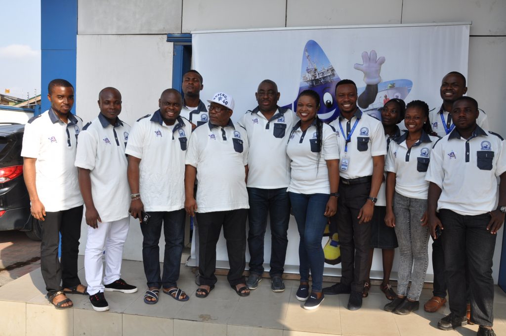 The General Secretary of Nigeria Union of Petroleum and Natural Gas Workers (NUPENG), Comrade Adamu Song in a group photograph with some members of staff clad in Union’s branded 40th anniversary shirts at the National Secretariat in Jibowu, Lagos. Wednesday, November 14, 2018.